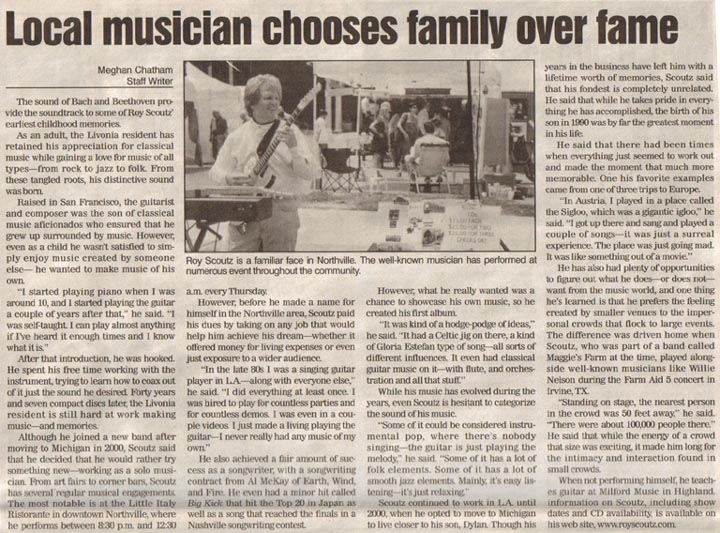 We heard Roy perform at an Art Show and were enchanted with his music and playing. We just want to say that we enjoy the Cds very much and look forward to hearing him perform again